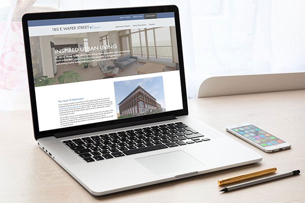 Created using our trademarked McConimore® WordPress theme, 180 E. Water Street’s website was developed quickly, efficiently, and within Catalyst’s budget. Property renderings, an amenities list, and an interactive map of downtown Kalamazoo courtesy of the Kalamazoo Downtown Partnership were used to give prospective residents an understanding of 180 E. Water Street and the inviting neighborhood housed within and around it.