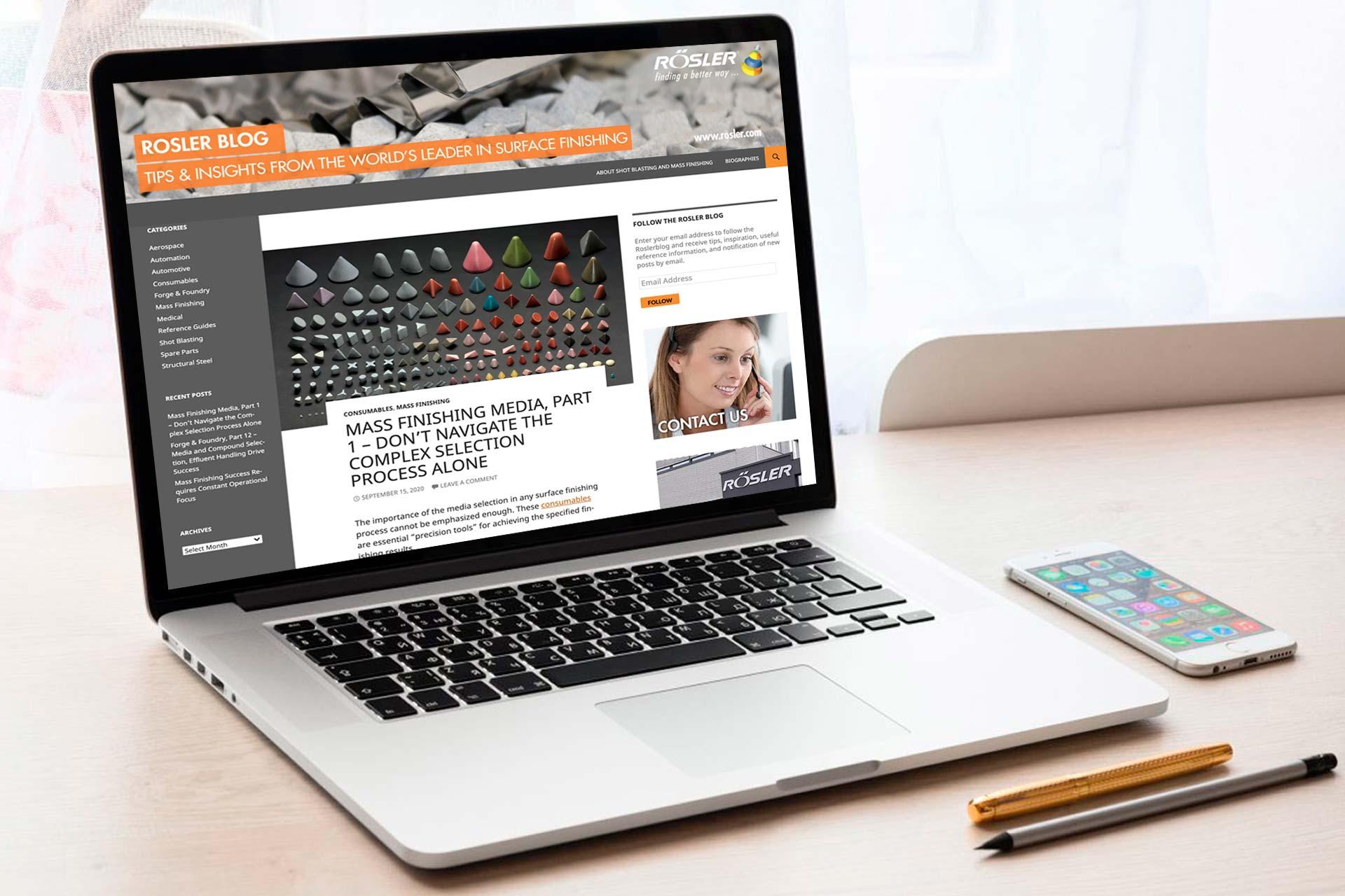 • Rosler’s blog – Published twice a month, the blog demonstrates industry thought leadership while showcasing the company’s standard and custom-order equipment offerings, consumables, and services for the surface finishing industry. LKF contributes copywriting and creative services as well as project management and blog administration for the Rosler blog and its associated enews and social media.