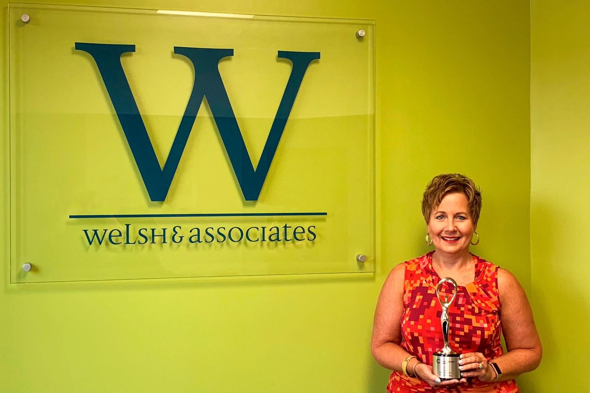 • Sheri Welsh, Welsh & Associate’s President and CEO, pictured with the Communicator Award of Distinction.