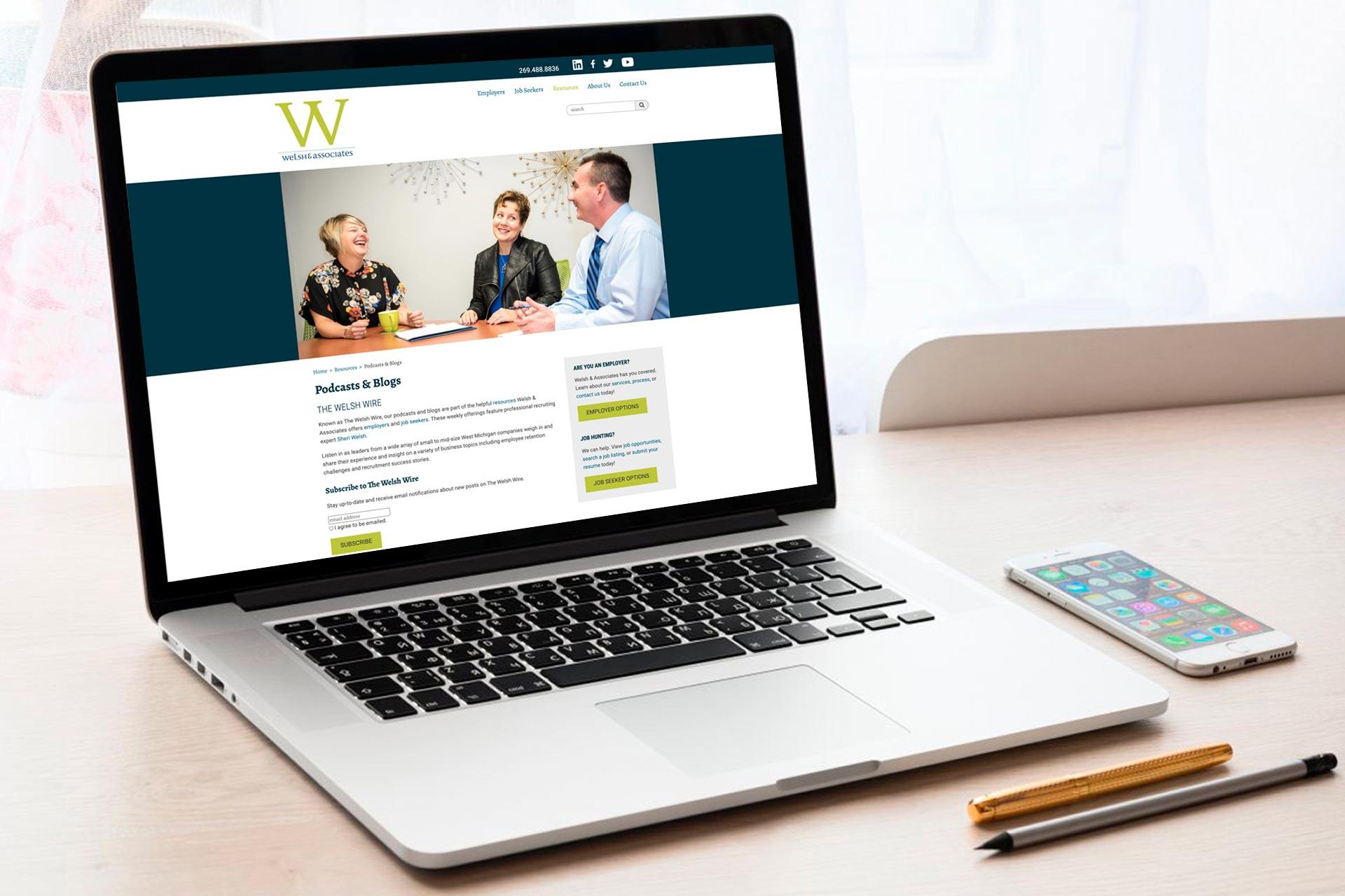 • The Welsh Wire podcast and blog – In addition to allowing Welsh & Associates to network with potential employers and job seekers, The Welsh Wire also acts as a platform for leaders of small to mid-size west Michigan companies to share their experience on topics like employee retention and recruitment. Published bi-monthly, Welsh & Associates partnered with LKF to create the blog and podcast from branding and implementation to production and continues to assist with distribution and promotion.