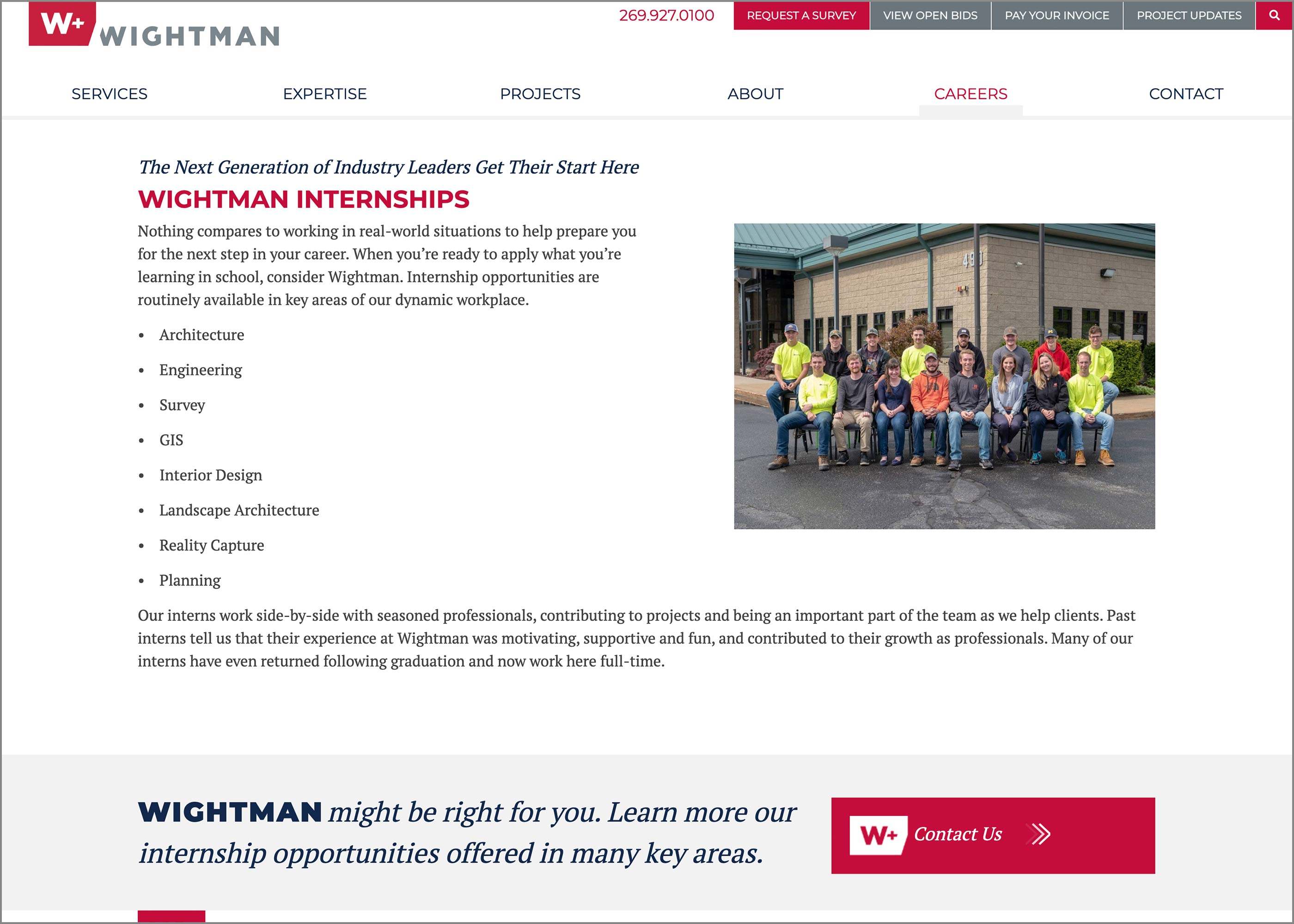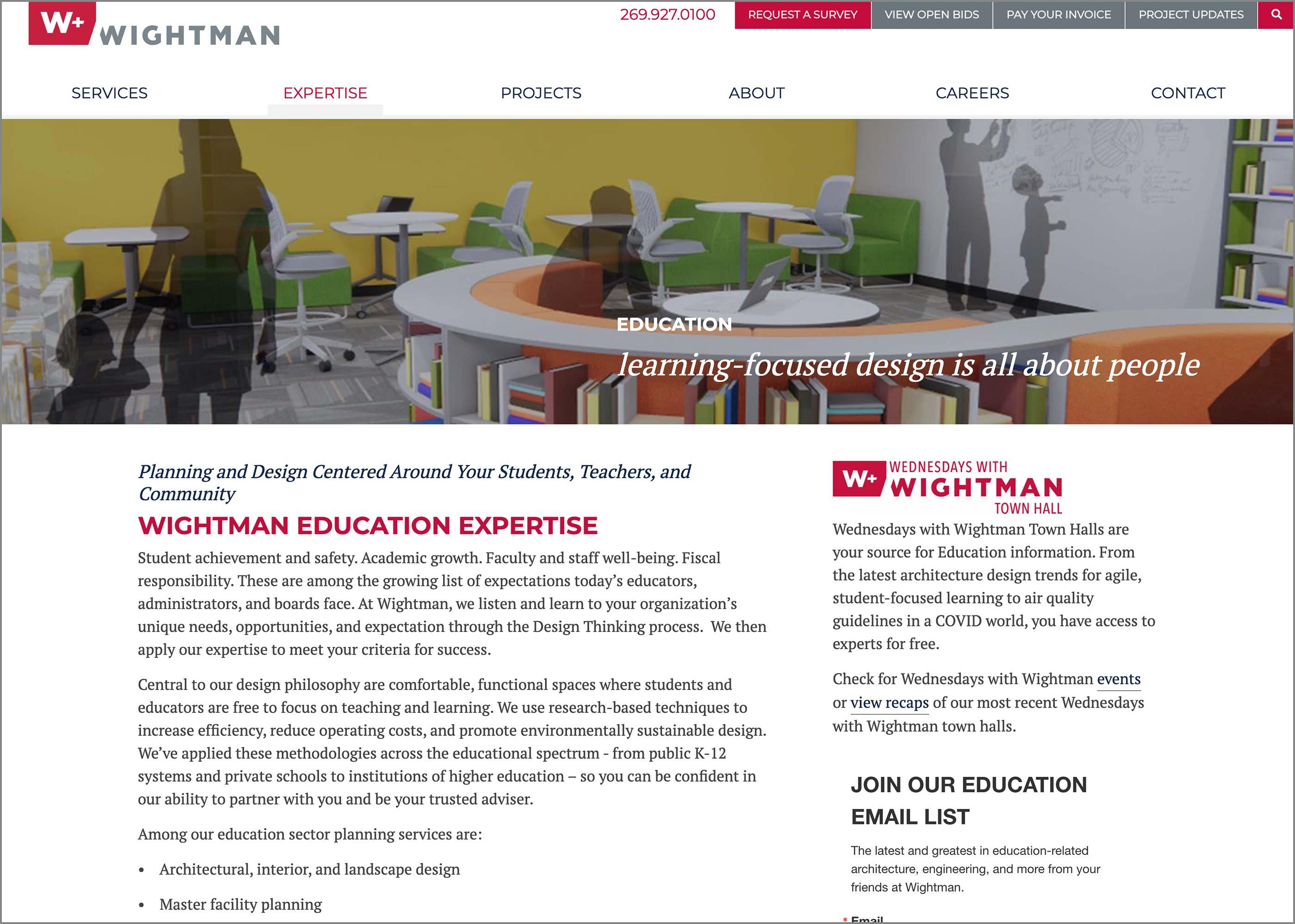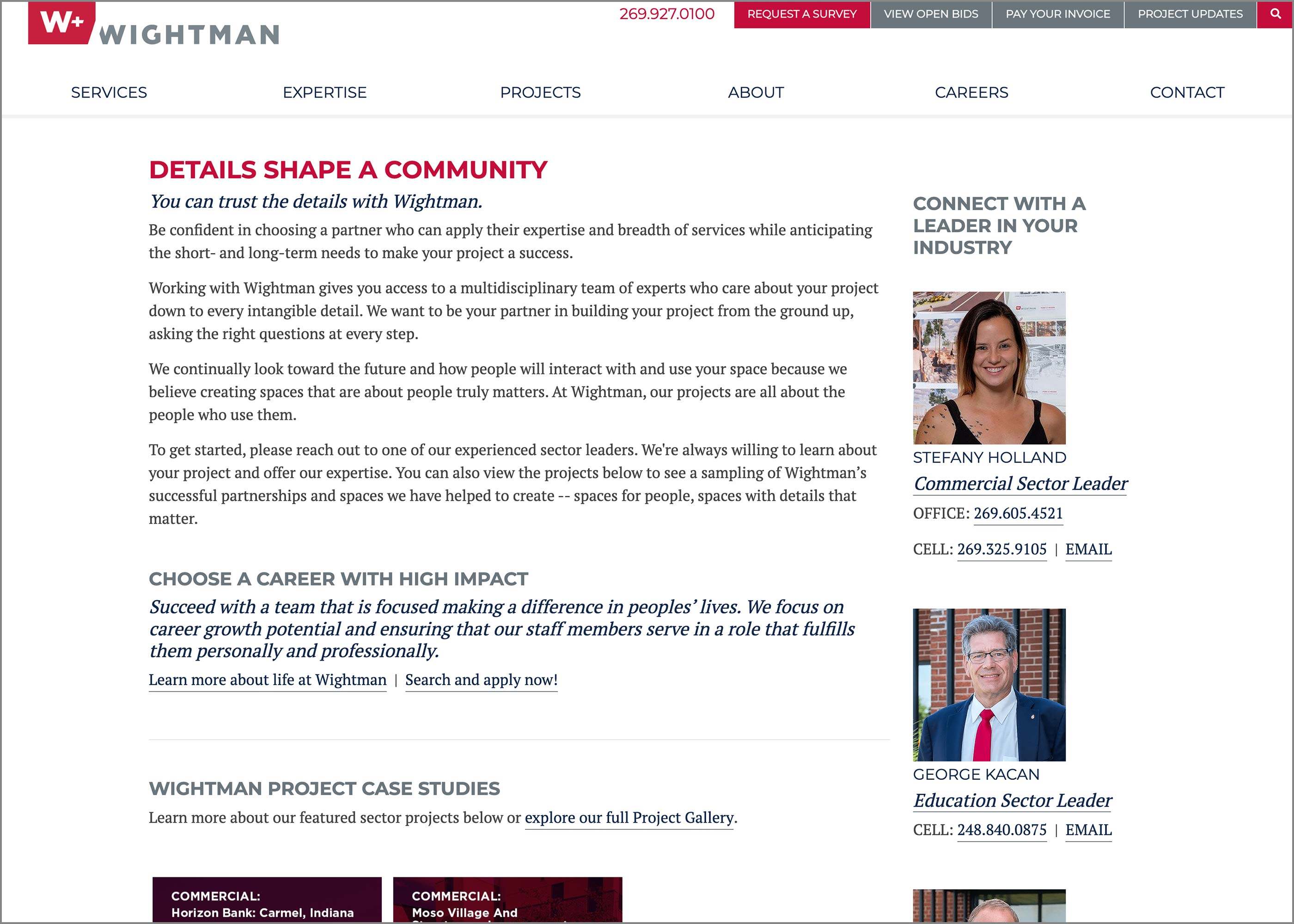 In 2019, Wightman selected LKF to help in redesigning their website. The organization wanted a site that could act as an extension of its unique brand and set it apart from its competitors as the first choice for engineering, surveying architectural, planning, environmental services, and supporting offerings.